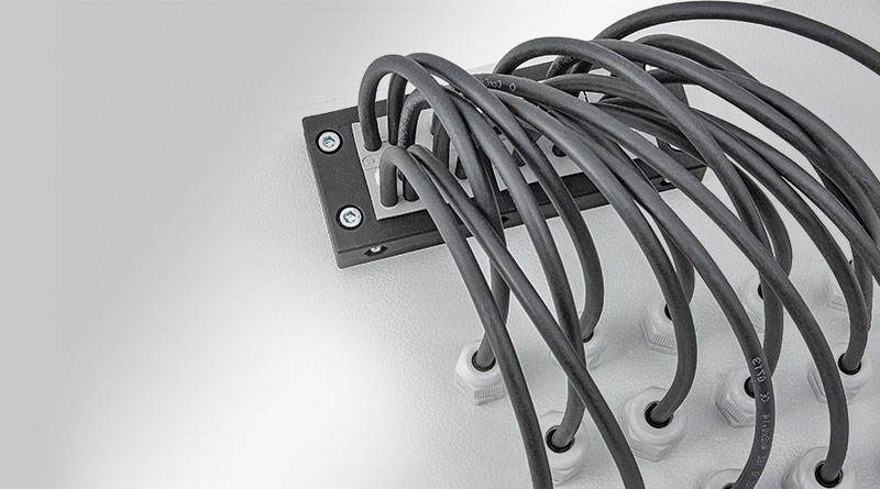 O sistema de entrada de cabos é fácil de instalar. Os passa-cabos são colocados em compartimentos e fixados com segurança à estrutura durante a montagem.